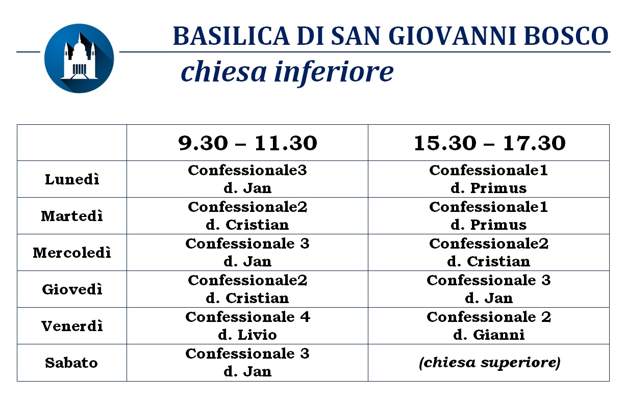 Pomeriggi di sabato e delle vigilie delle feste di precetto – (Chiesa Superiore):