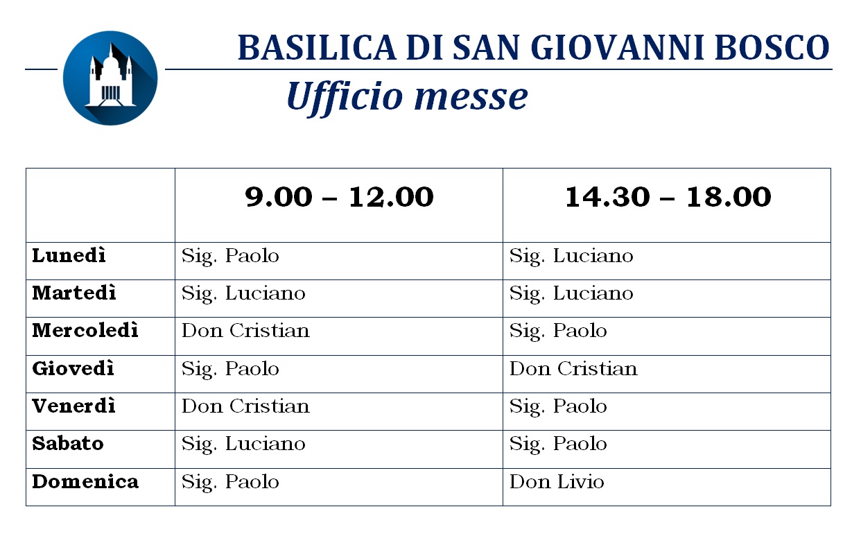 l’Ufficio Informazioni, Ss. Messe, Oggetti smarriti: