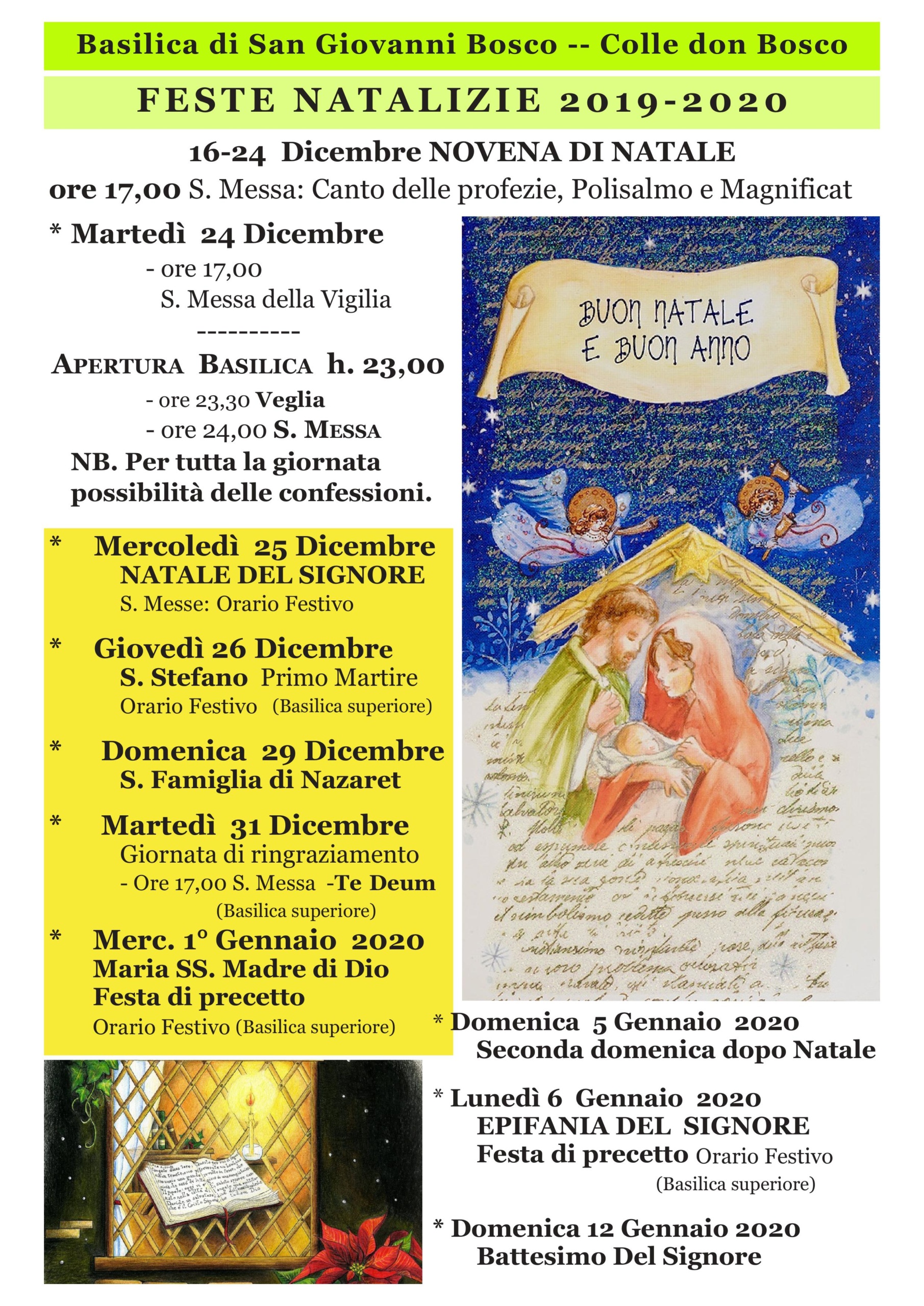 - Mercoledì 25 dicembre 2019: Natale del Signore. Sante Messe in orario festivo.