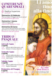 20.30 Veglia di inizio Quaresima con confessioni e imposizione delle ceneri nella Basilica Superiore